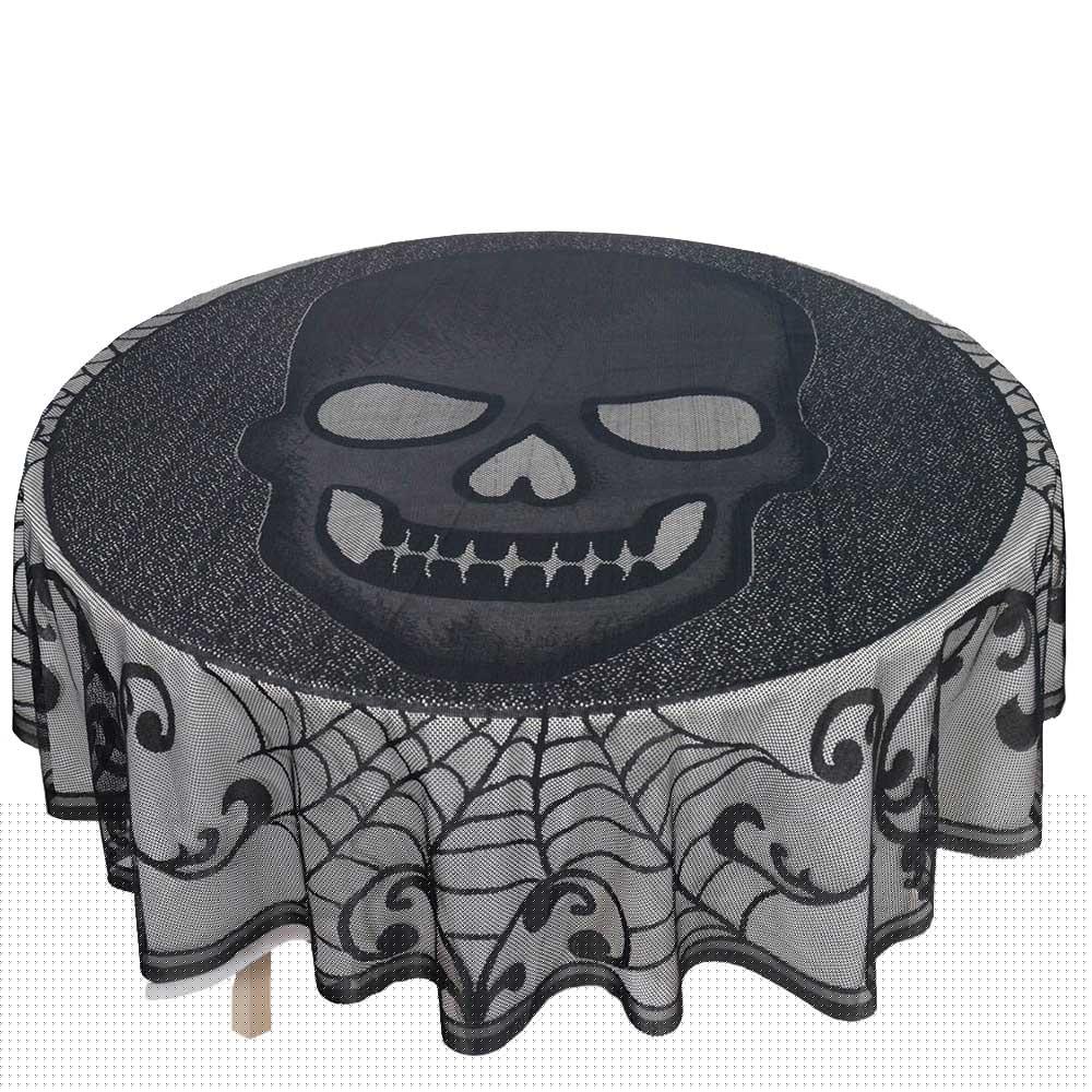 Halloween Table Cloth Skull Round Lace 70In
