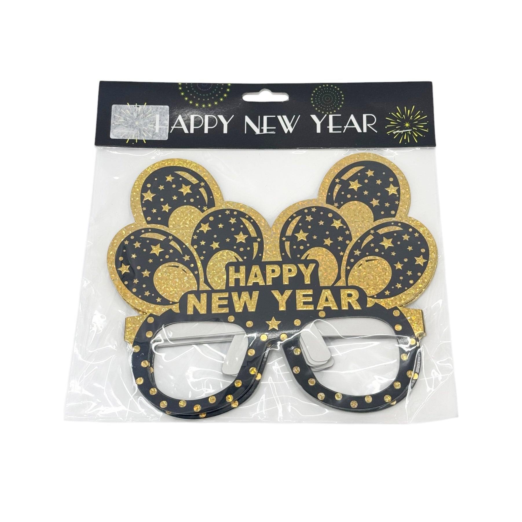 Happy New Year Black & Gold Balloon Mask - 6pcs Set