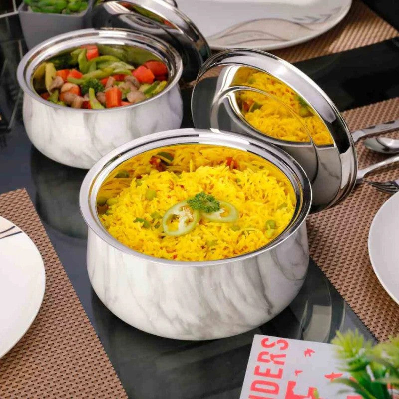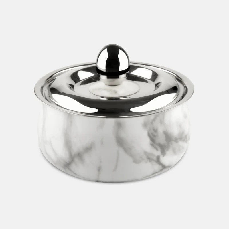 Double Wall Insulated Stainless Steel Designer Casserole with Lid Marble Finish Rivetless Heat Resistant Handle Odour Free BPA Free Ideal for Curry Rice Chapati Easy to Carry Easy to Store