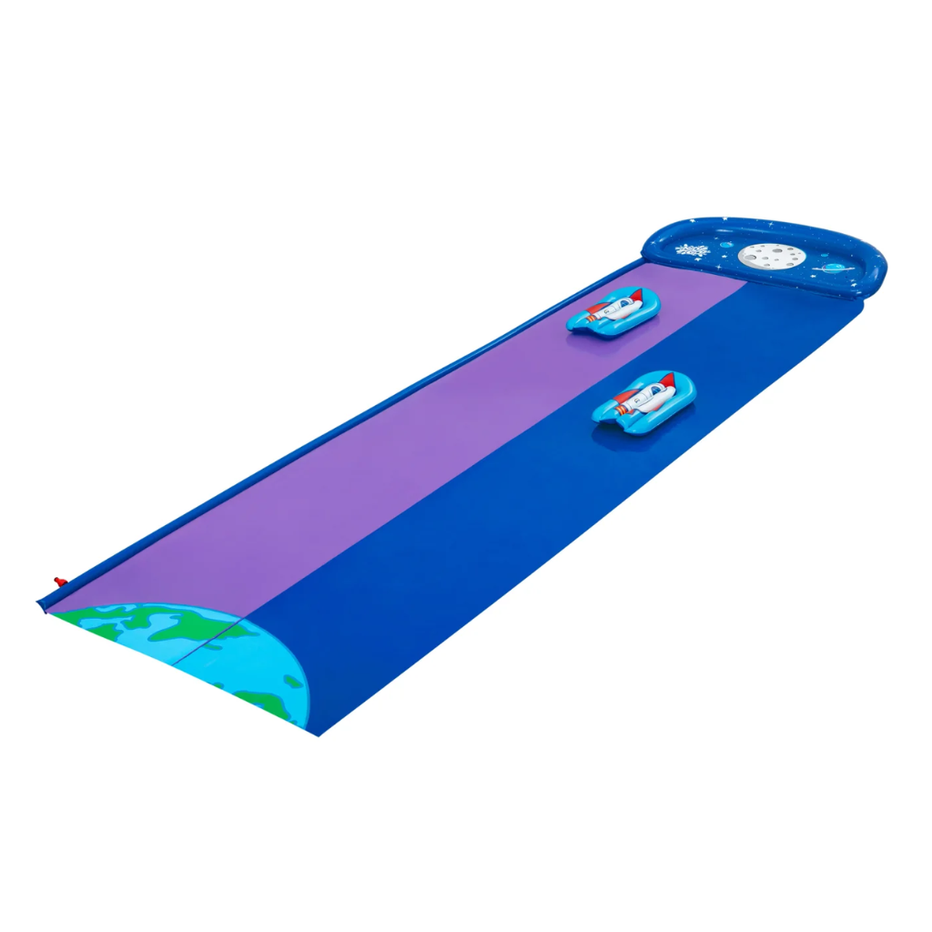 COSMIC SPACE WATER SLIDE: embark on an exciting summer adventure with the double slide, featuring a vibrant and cosmic design that will provide your kids with endless hours of play!