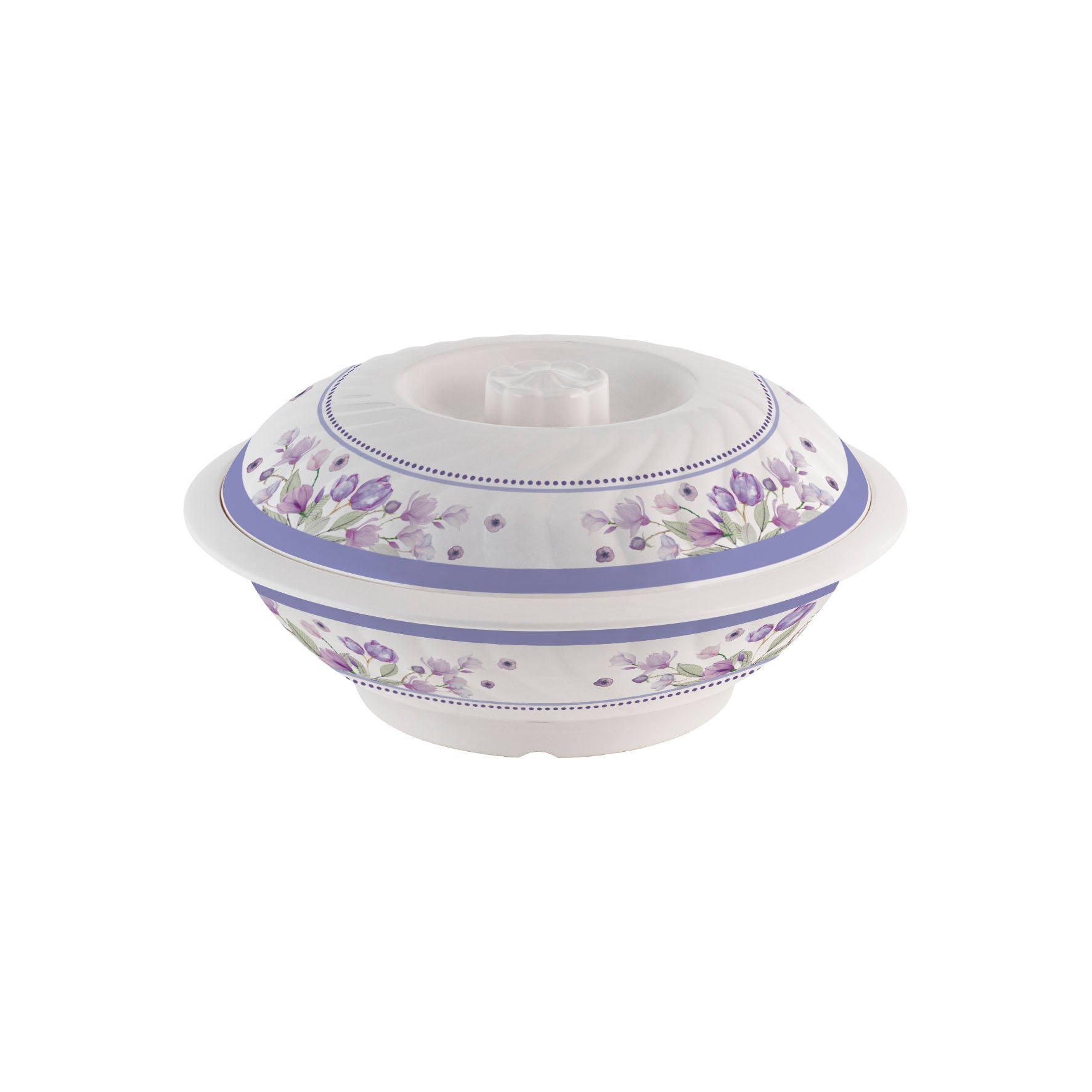 10" Melamine Casserole Bowl with Cover keeps food warm and fresh. Durable, lightweight, and perfect for serving hot meals.
