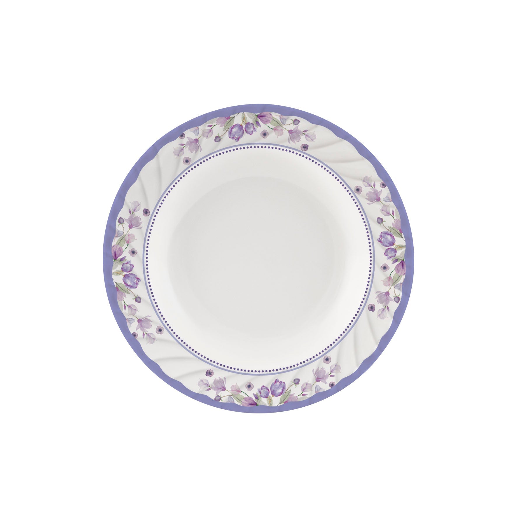 Wavy Rim, Color: White with Floral Printing, Dishwasher Safe Break Resistant.