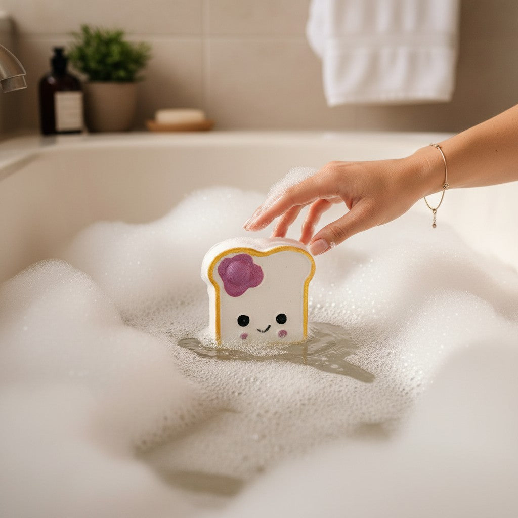 Tina the toast entered the bath with a soft, satisfied fizz,. As she dissolved, a gentle wave of toasted warmth and luxury filled the air, transforming the bath into a serene, upper-crust escape. Tina was perfectly at home in the elegant bubbles she created, and with each bubble that popped, she felt more like royalty.