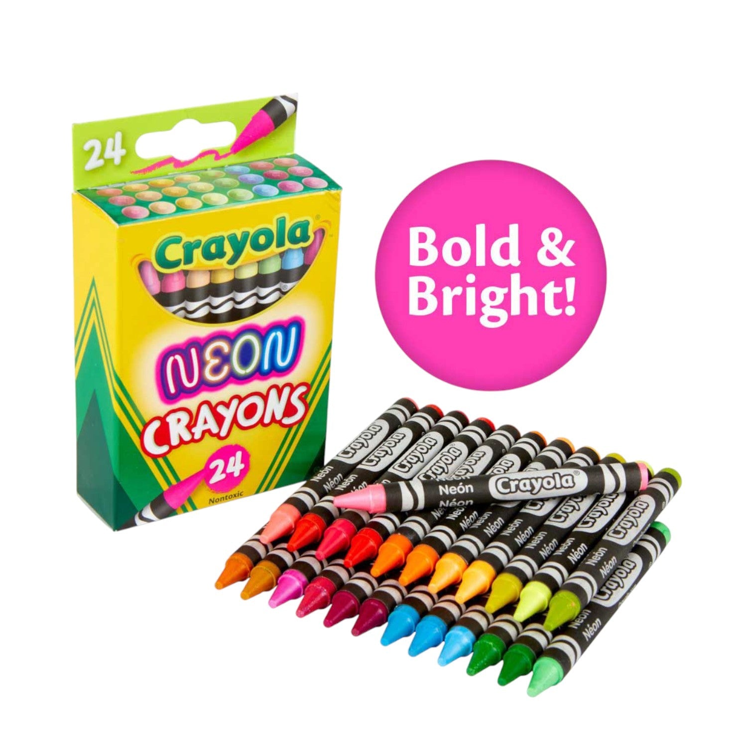 Shockingly bold and bright—Crayola Neon Crayons add vibrancy to your coloring designs or art projects when you need that extra "WOW" factor. Great on light or dark paper.