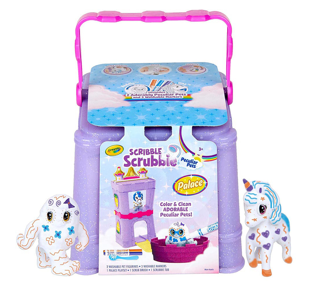 This palace isn't home to your favorite princess, instead you'll find an unlikely duo of Scribble Scrubbie beasts, a magical unicorn and a delightful yeti! All Crayola Scribble Scrubbie toys are washable so you can color & customize with the included markers then wash them and start again. Includes 1 Unicorn Toy and 1 Yeti Toy, 3 Scribble Scrubbie Markers, 1 Small Tub, 1 Palace-Shaped Plastic Playset. Ideal birthday or holiday gift for girls and boys. Perfect for kids, ages 3 and up.
