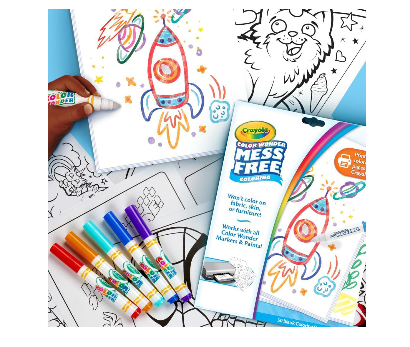 Keep the Color Wonder fun going with 50 Blank Mess Free Coloring Pages! Color wonder supplies won't Color on skin, clothing, or furniture! Kids can also customize Color Wonder Blank Pages by printing Coloring sheets from anywhere they'd like. Start Coloring immediately once the selected image is printed no dry time required! Keep the mess free Coloring supplies stocked and ready with 50 more Color Wonder Papers.