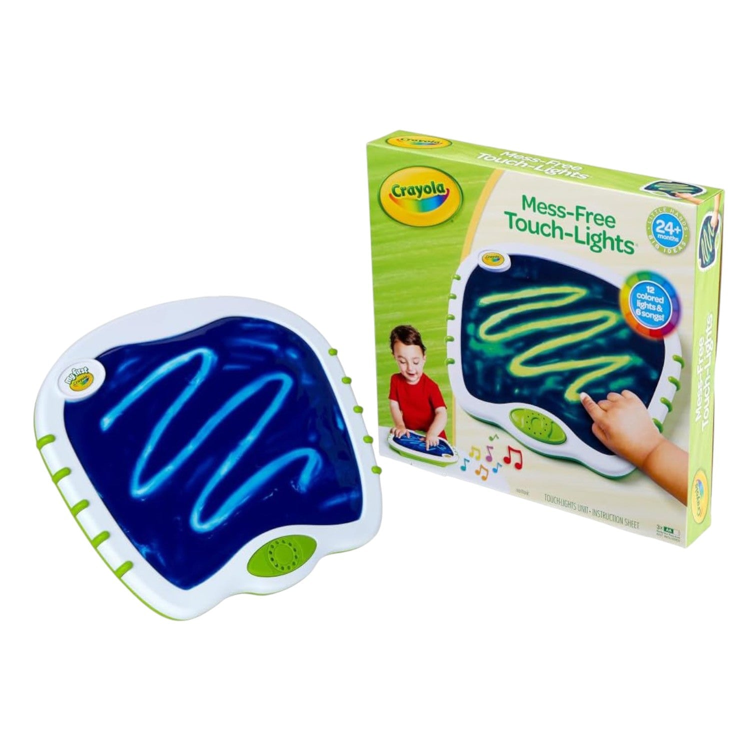 Empower your little one’s imaginative play with the Crayola Toddler Touch Lights Musical Doodle Board, a self-contained toddler tablet that brings a symphony of lights and sounds to their fingertips. This sensory board is designed to stimulate tiny fingertips with textures and colors, making it an exceptional educational tool that sparks learning and development in toddlers.The sealed gel surface provides a safe canvas for doodling with fingers, offering a mess-free, portable play experience. The board lights up each doodle with 12 vibrant colors, transforming every scribble into a delightful, glowing spectacle. To enhance the creative experience, the board comes with 6 delightful tunes that toddlers can hum along to while doodling. This feature not only stirs creativity but also adds a musical dimension to their playtime. The board is lightweight and portable, making it an ideal travel companion for toddlers during car rides or airplane journeys. It requires 3 AA batteries (not included) and comes with an instruction sheet for easy setup and use. This sensory board makes a great Christmas gift for toddlers and a thoughtful holiday present for boys and girls, perfect for festive celebrations like Hanukkah and family gift exchanges. Perfect for ages 2 and up.