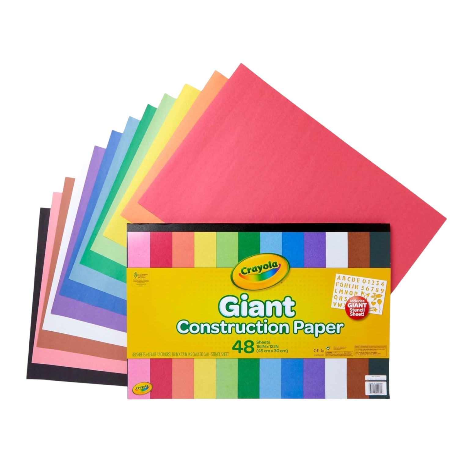 School projects and homemade crafts are made brighter with this Giant Construction Paper & Stencil set from Crayola. Give kids simple-to-use art tools and the space they need to create, and watch their imaginations soar. This set includes 6 sheets of each color including pink, red, orange, yellow, green, blue, white, and black. It also includes an extra-large stencil that helps kids to draw with clean lines.