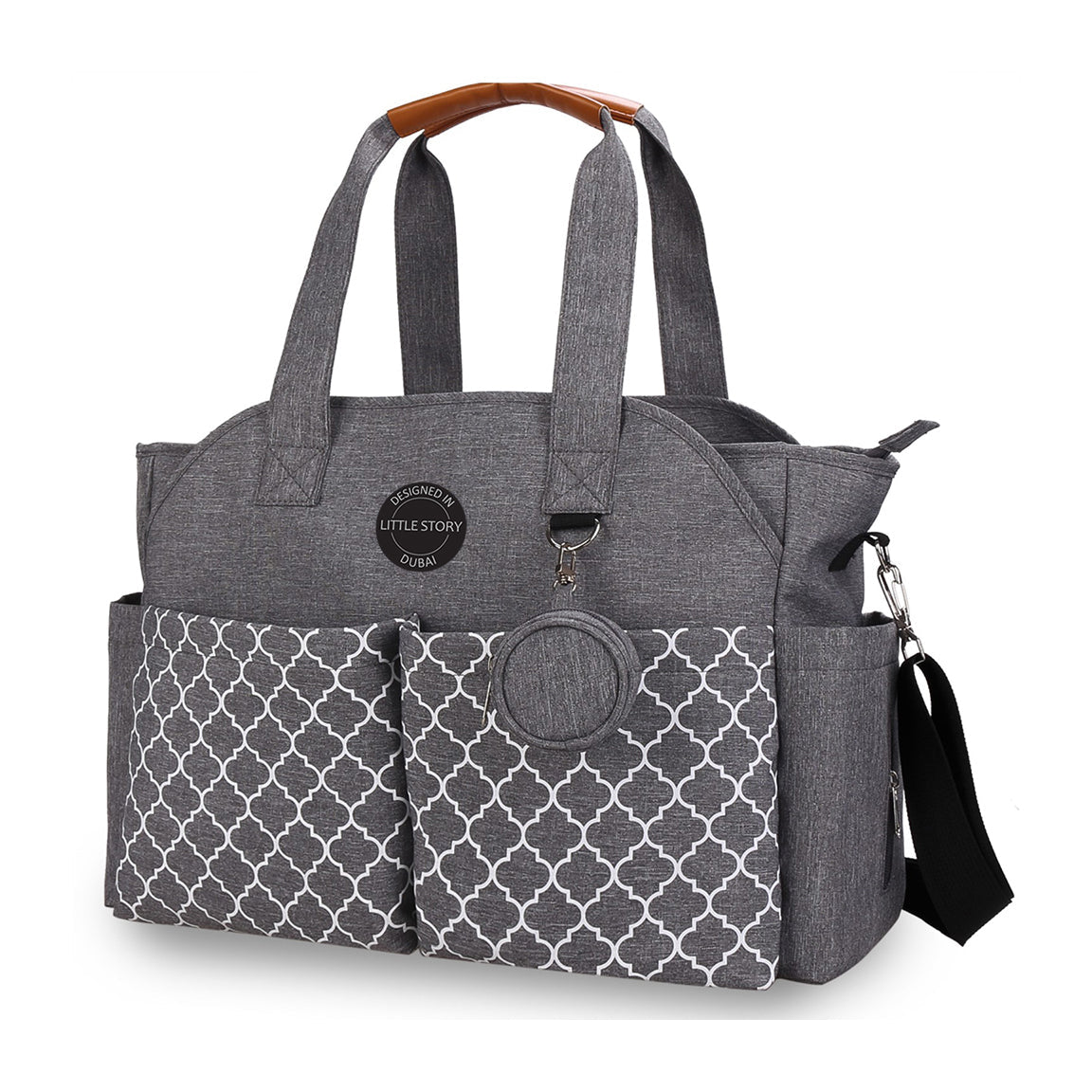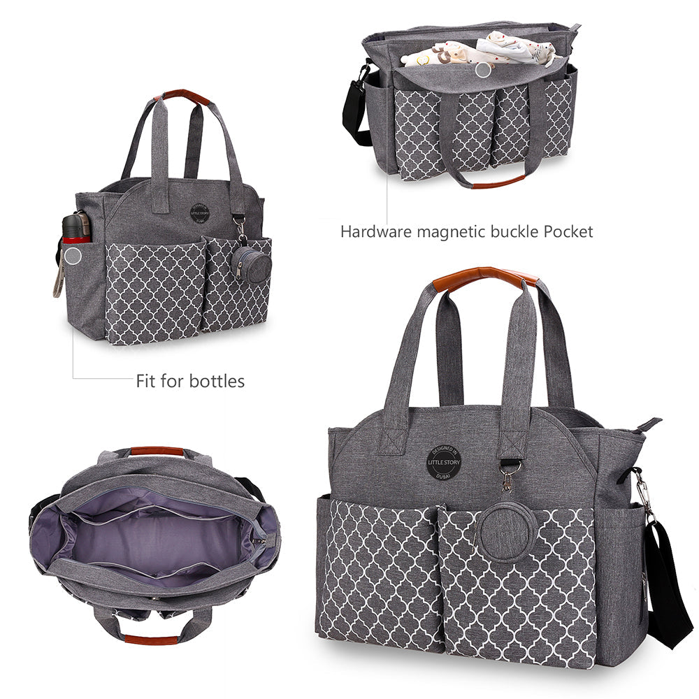 The Signature Style Mommy Diaper Bag is here from Little Story by SAMBOX. This gorgeous Bag Flaunts Maternity Messenger style with lovely colors. All in all 12 pockets are what a perfect Nappy organizer backpack should have! Two side ways pocket to keep tissues and water bottle handy. A small Bib Pouch to keep the Baby Pacifier safe and separate. The front pockets have enough space to keep additional bibs; spoons or soothers. Keep yourself hands free with detachable stroller hooks which comes free with the bag. A diaper changing mat is also included for easy nappy change. Adjustable messenger side strap is comfortable and stylish for the Mums.