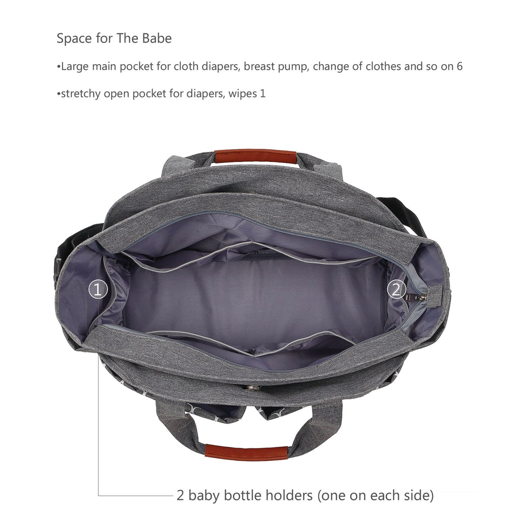 • Sides Pocket: Special Pockets on both side of our baby diaper bag make it convenient to keep water bottle and pack of tissues.
