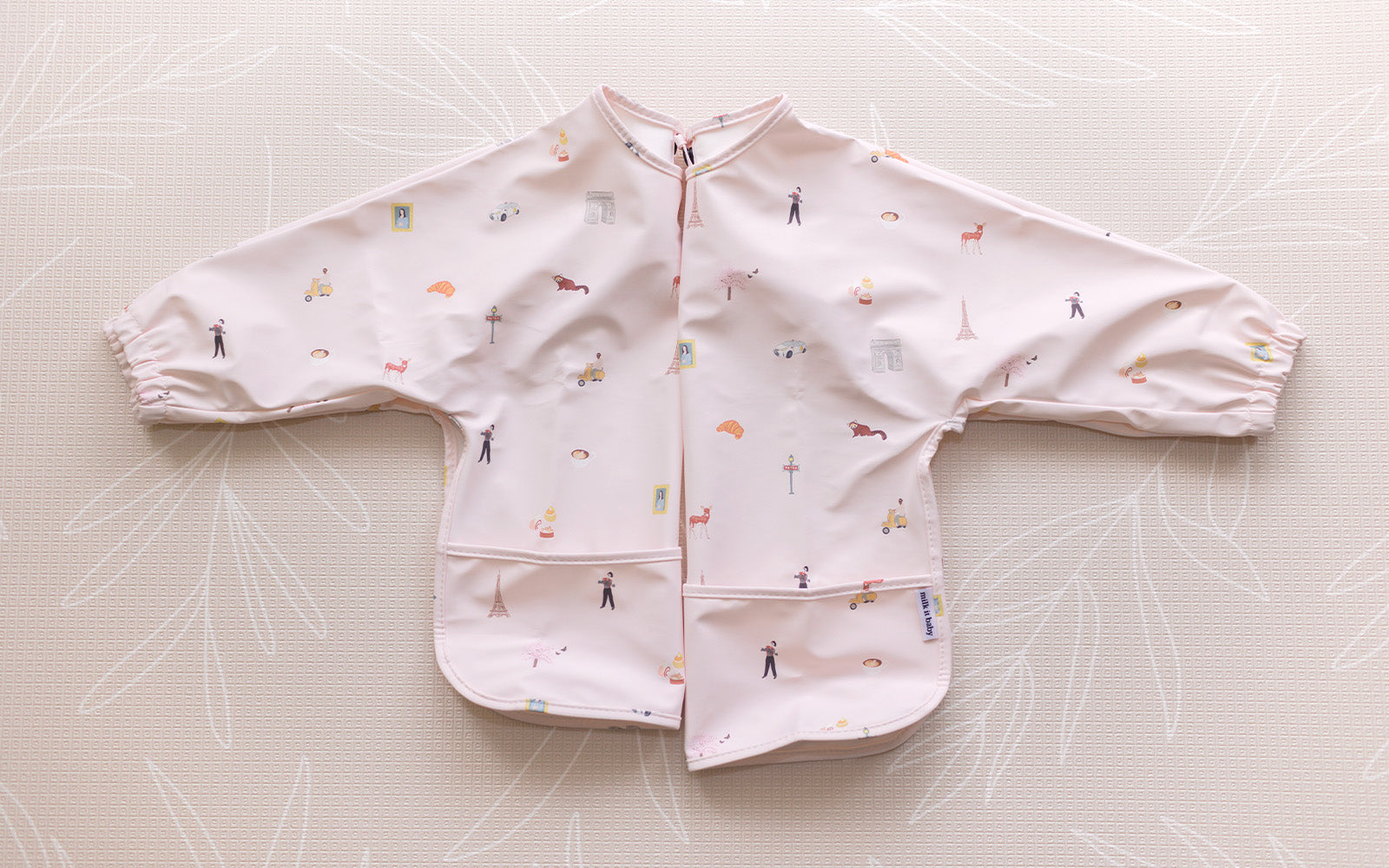 Say bonjour to our Paris City Printed Sleeved Bib, where every meal is a stroll through the streets of Paris! Featuring hand-illustrated icons like the Eiffel Tower, croissants, macarons, scooters, and even a charming mime or two this bib captures the whimsical romance of the City of Light. With full-length sleeves, a catch-all pocket, and easy-wipe fabric, it’s perfect for stylish little diners who don’t mind a little mess with their madeleines.