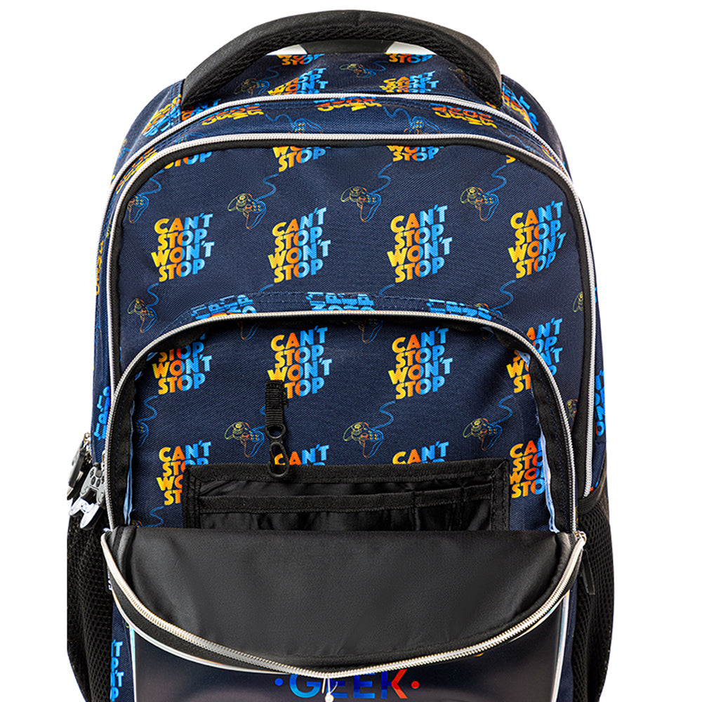 Crafted from premium fabric, this sleek black backpack with a trendy gaming design is built for everyday school adventures. Whether rolling through the hallways or carrying it on the shoulders, the Eazy Kids Gamer Geek set is the ultimate school companion—level up your style, stay organized, and conquer every school day like a pro!