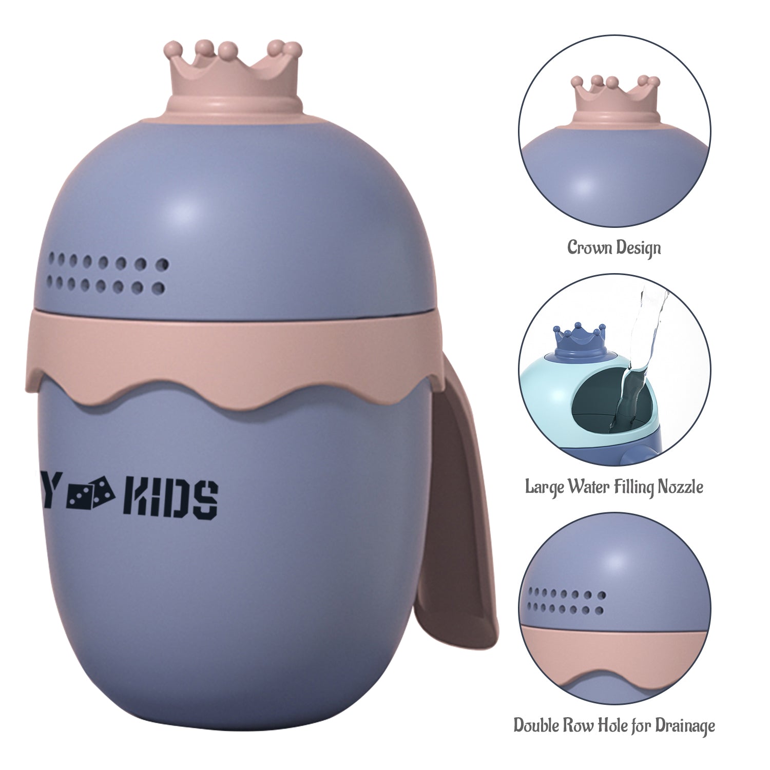 Eazy Kids new generation Crown Shape Baby Head Shampoo Wash Rinse Mug is a Fun way to shampoo kids’ head. This baby Shampoo shower mug is handy and convenient to fill with water with large water filling nozzle, designed with an ergonomics handle, provide a comfortable grip. The water outlet is a spray design with double row holes, which makes the water flow more stable and even. Smooth surface, no edges / burr, skin friendly, kid friendly, safe, and durable for use, not easy to break, long serving life. and reliable. Made of PP makes it very sturdy, comes with 500ml capacity.