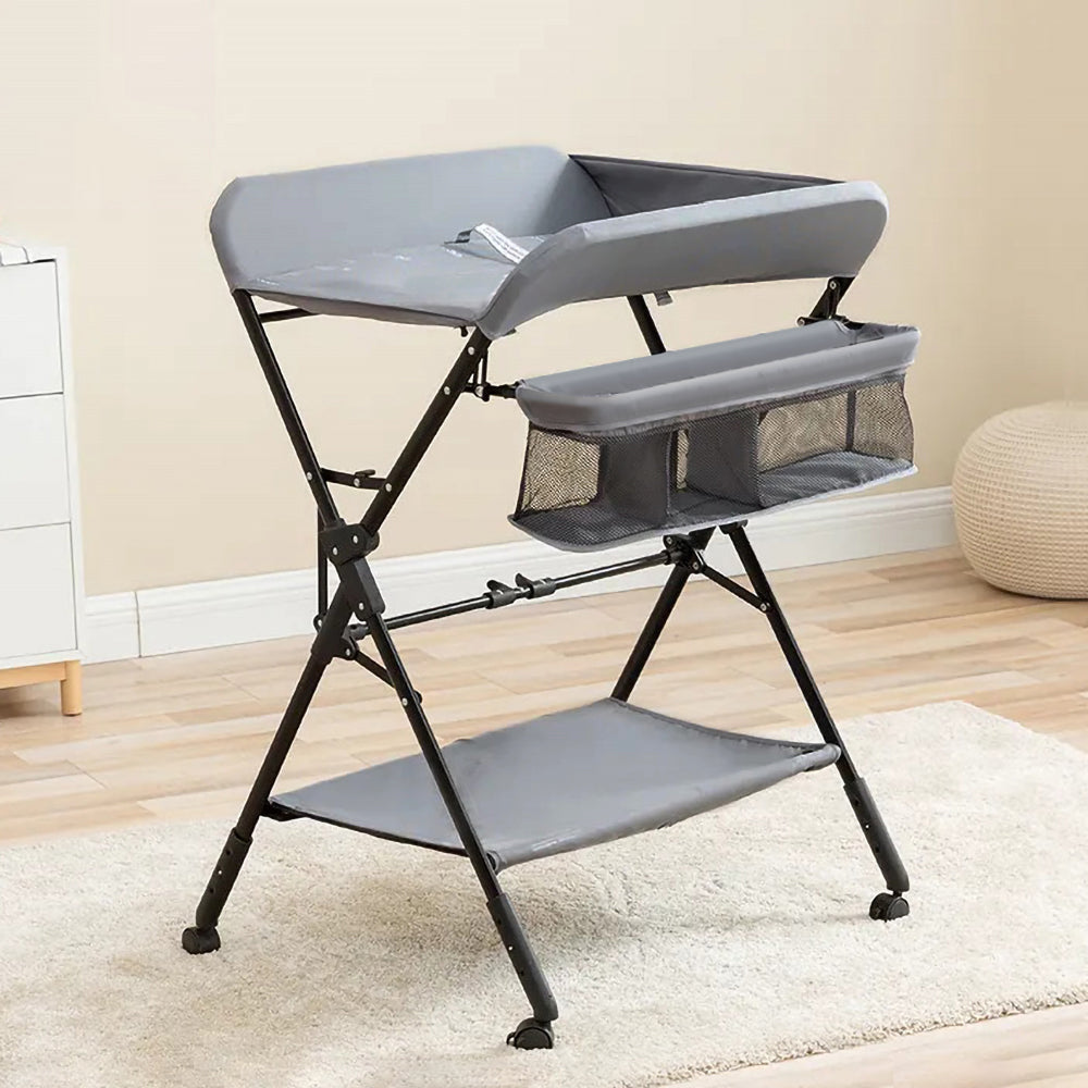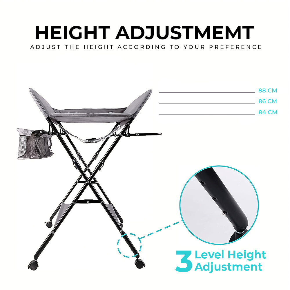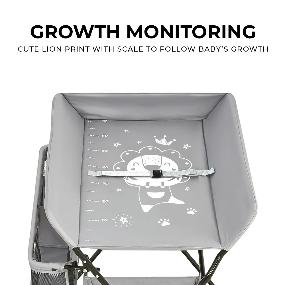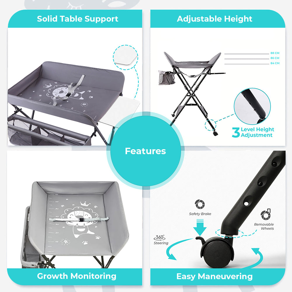 Teknum Diaper Changing Table by SAMBOX is the best for both mum and the baby. Diaper changing station built for sturdy durable color coated Steel rods with long - lasting Safe and skin - friendly oxford fabric & cold - rolled steel to ensure your baby safety with Leo Print. 4 - in1 Diaper Changing Table & Nursing Station can be used as Diaper Changing Table, Portable Massaging & Nursing Station , Cloth Drying Hanger with Storage and Diaper & Nursing Organizer, can place diapers, towels, tissues, small baby toys & dolls, and more comes with Universal wheel with 360° rotation with Lockable Bearings can move on the rough ground and plush carpet more easily. The beautiful color and premium design add to your nursery decor and Easy to Store with foldable design.