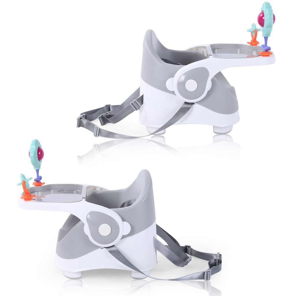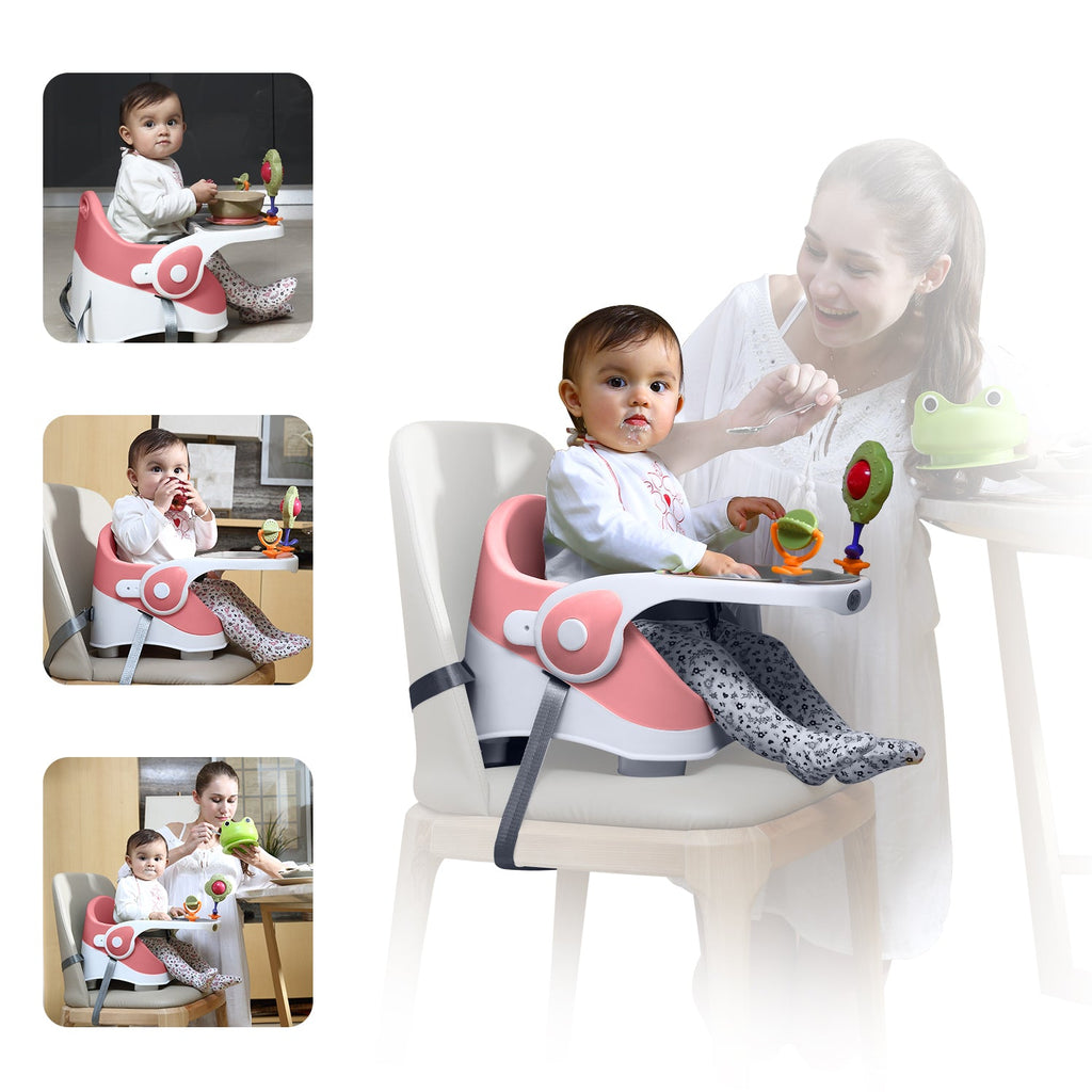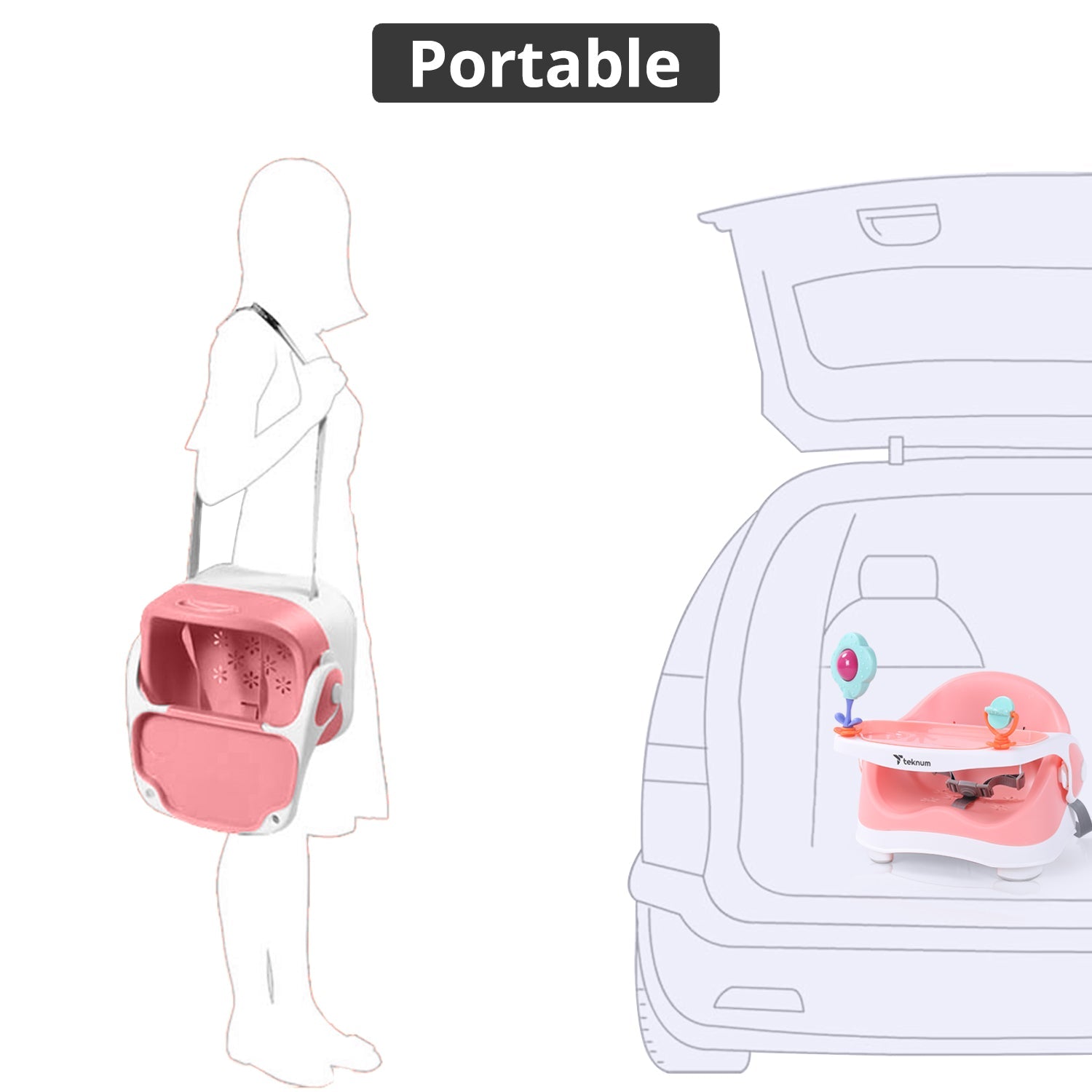 Highchairs are great for babies but when it comes to portability, Booster are even better! The Teknum Portable Booster Chair by SAM BOX is lightweight, making it easy to carry around, and it can be securely strapped to any chair at the dinner table. The Chair is equipped with a toy and a feeding tray which can have three different sizes. Carry it when you are going out for a picnic or to a restaurant, on a holiday. Can be also used at the park with just on the ground. The Baby can enjoy the meal in a secure comfortable chair.