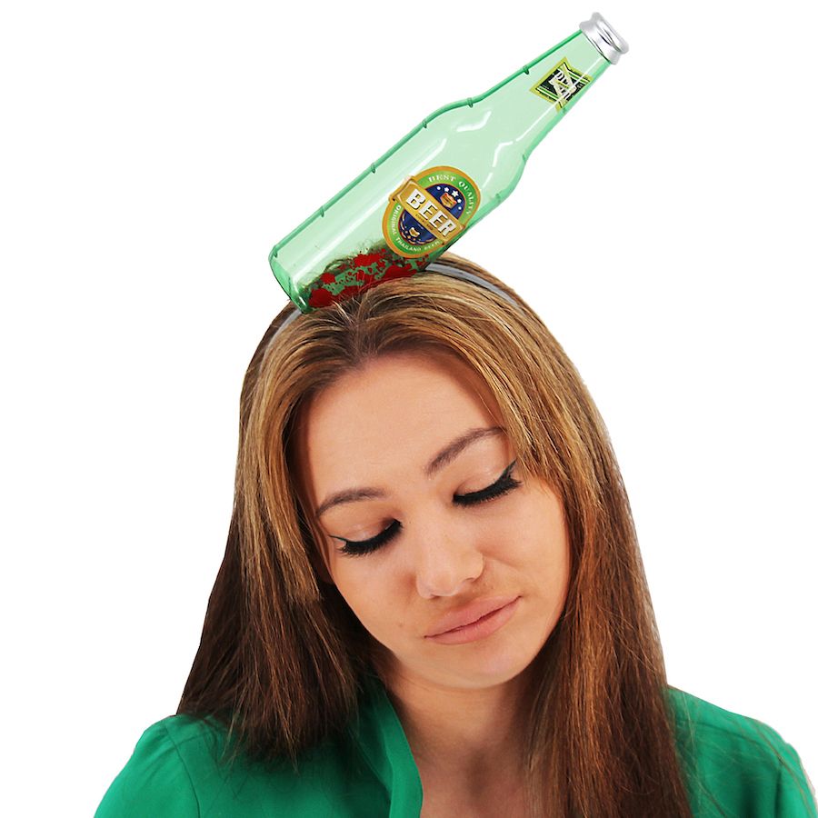 Create a shockingly realistic illusion that looks like a beer bottle is smashed straight through your skull — without any pain, just laughs and gasps!