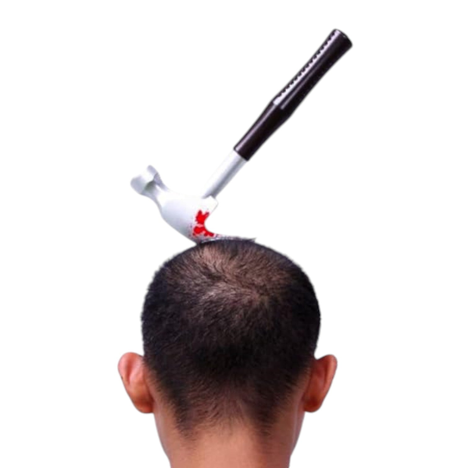 Create a shockingly realistic illusion that looks like a giant hammer is smashed straight through your skull — without any pain, just laughs and gasps!