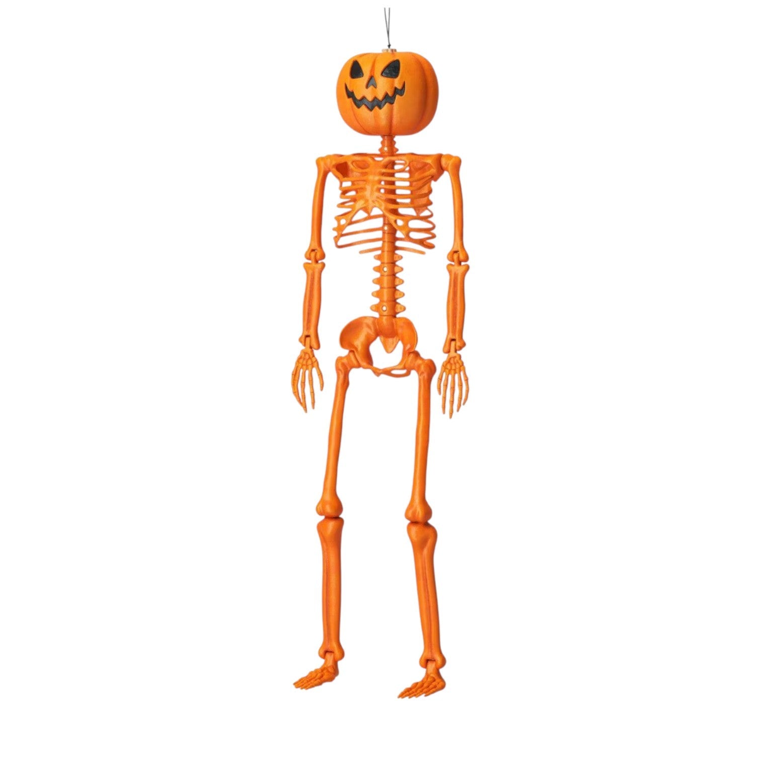 Add a scary yet fun touch to your Halloween decorations with the Pumpkin Head Skeleton Halloween Decorative Prop from Hyde and EEK! Boutique™. Made from polypropylene material, this poseable decorative skeleton prop comes with a pumpkin head in a bright orange hue that makes it the focal point of your festive decor. Designed for indoor or outdoor use, you can hang this decorative prop in the entryway or living room alone or with other Halloween props for a fun ghoulish display.