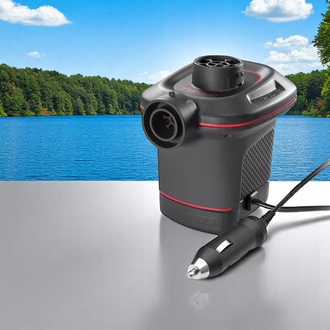 This car-powered Intex Quick-Fill™ DC Electric Air Pump is perfect for outdoors use for inflating air-mattresses, rafts, and more. The sleek and compact design fits perfectly in the palm of your hand. Simply connect the 12-volt DC power plug to your car's power outlet and start inflating or deflating. The included adapter with 3 nozzles makes this pump compatible with many different inflatable products while the 650 L/min max air flow gets the job done quickly. Never get caught trying to find a power outlet or inflate manually, get the Intex Quick-Fill™ DC Electric Air Pump and get the job done quickly.