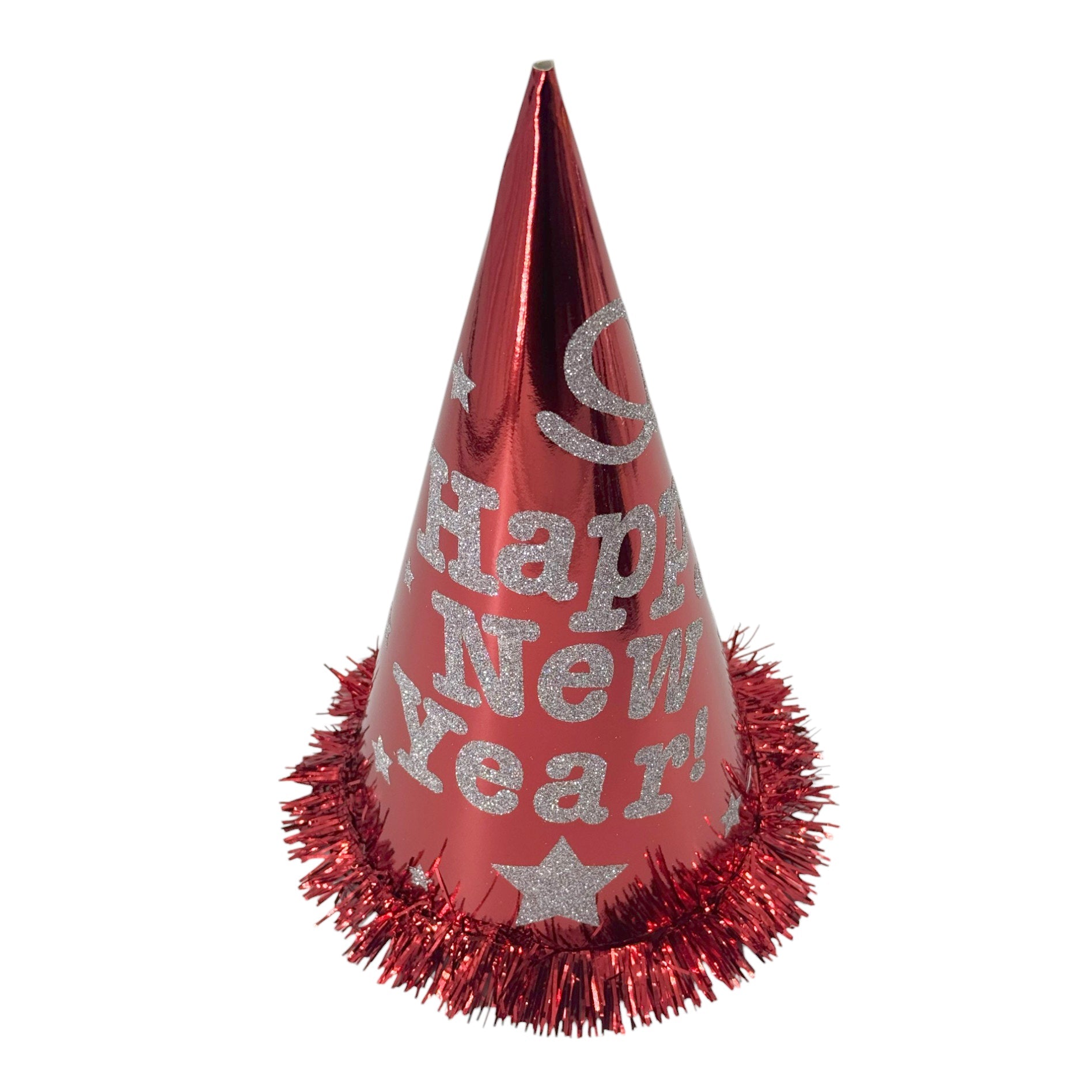 Happy New Year Cone Hat - Glitter Red