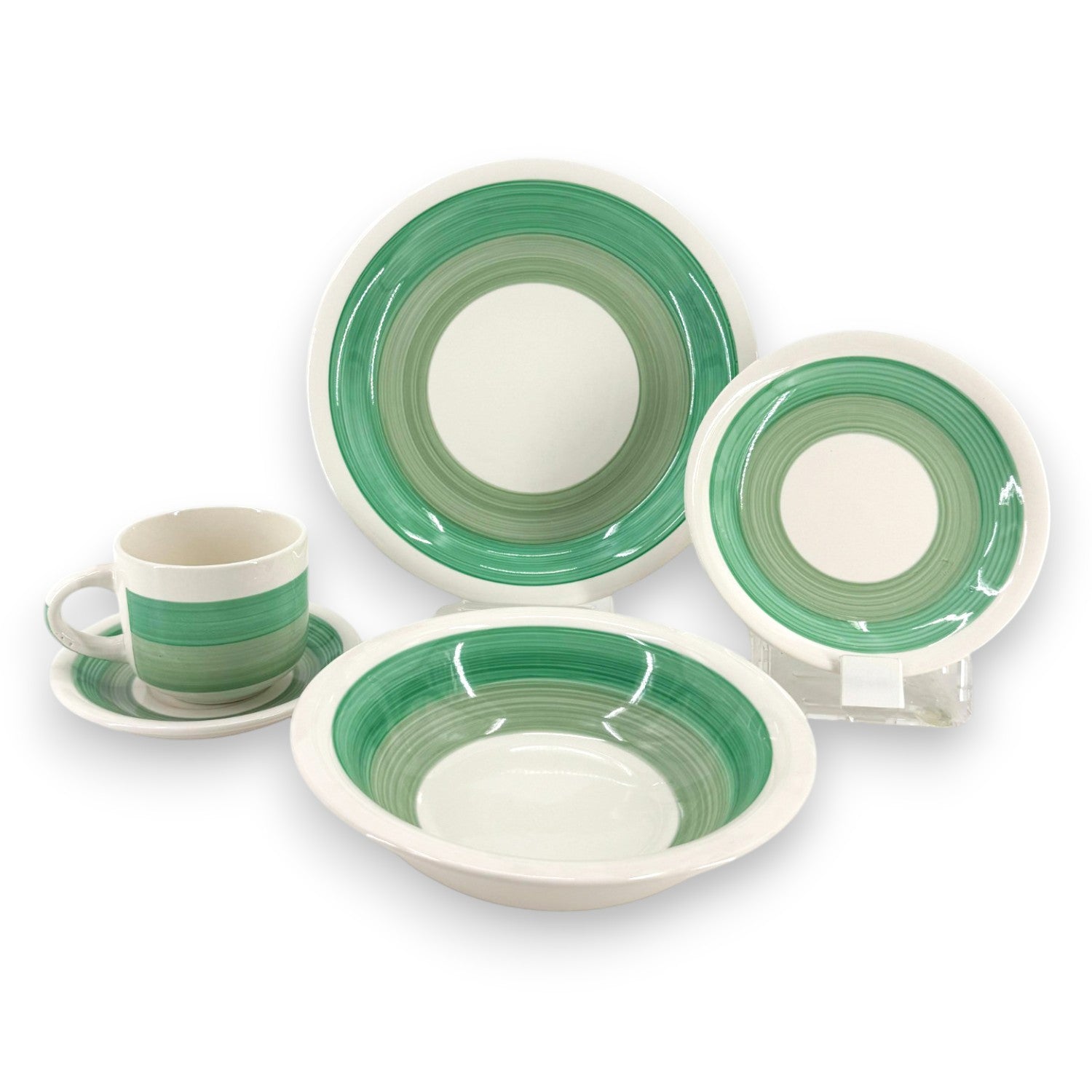 Artisanal Porcelain Dinner Set 20Pcs - Lines Green is backordered and will ship as soon as it is back in stock.