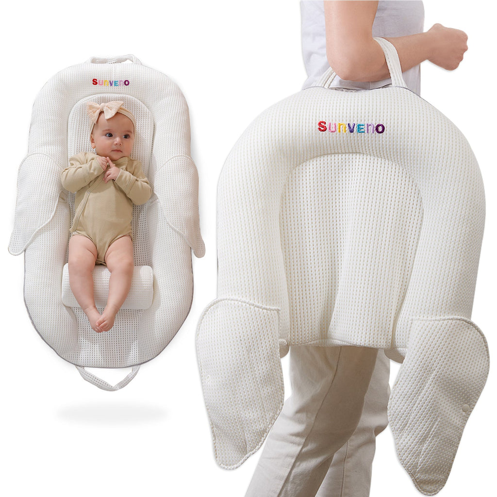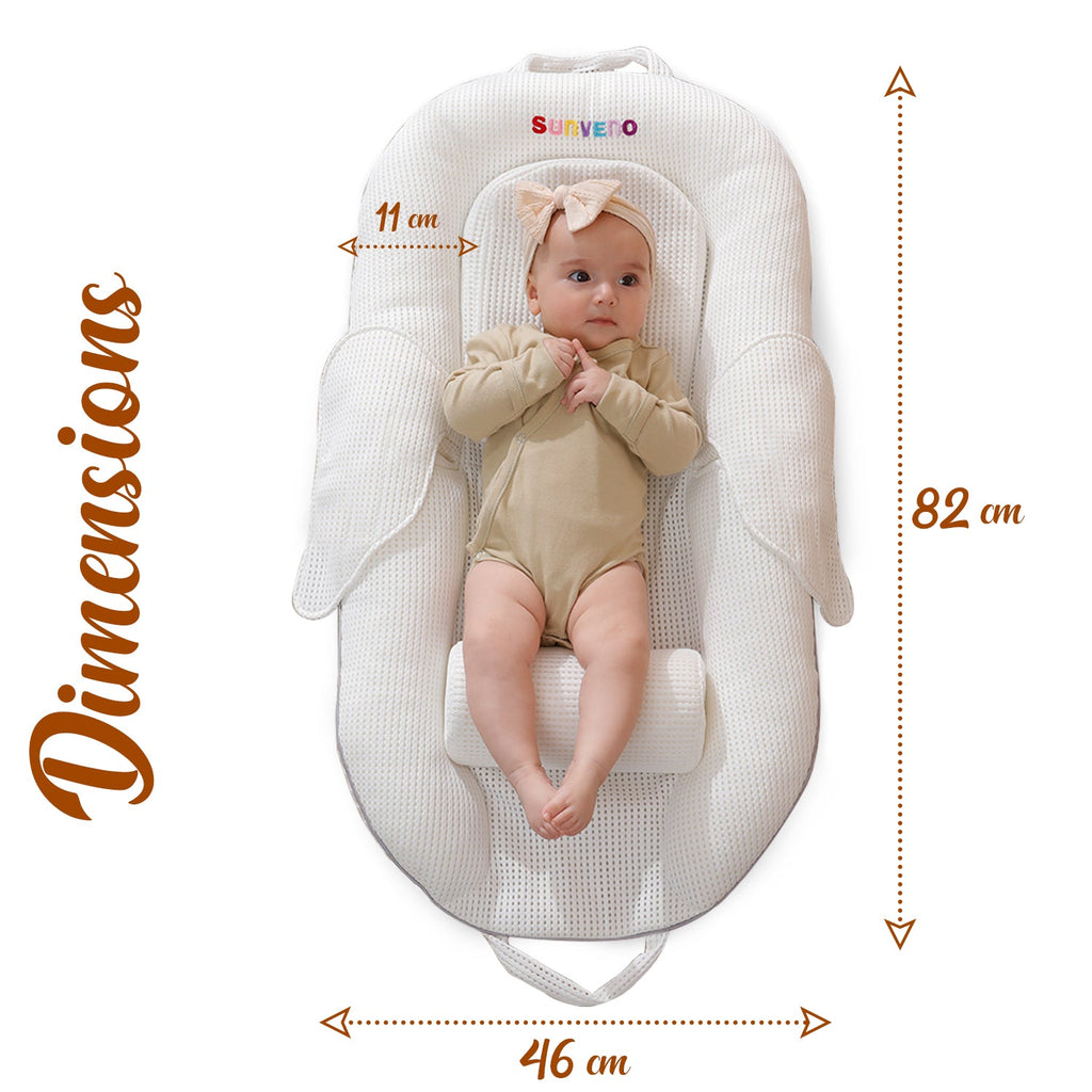 Just as precious as your little one, this cozy Sunveno DuPont Wings Baby Lounger ensures a perfect sleep for your delicate baby! This baby nest by SAMBOX, follows the highest quality standards. It's made with high - quality DuPont Corn Fiber Mattress with Soft Skin Cool Lensing Modal fabric with amazing properties of High Permeability and Pressure Redistribution. This breathable and antibacterial baby bed is unique in design with a gentle angle which is a special anti - reflux feature to make baby sleep comfortably in upright position to avoid reflux and colic.
