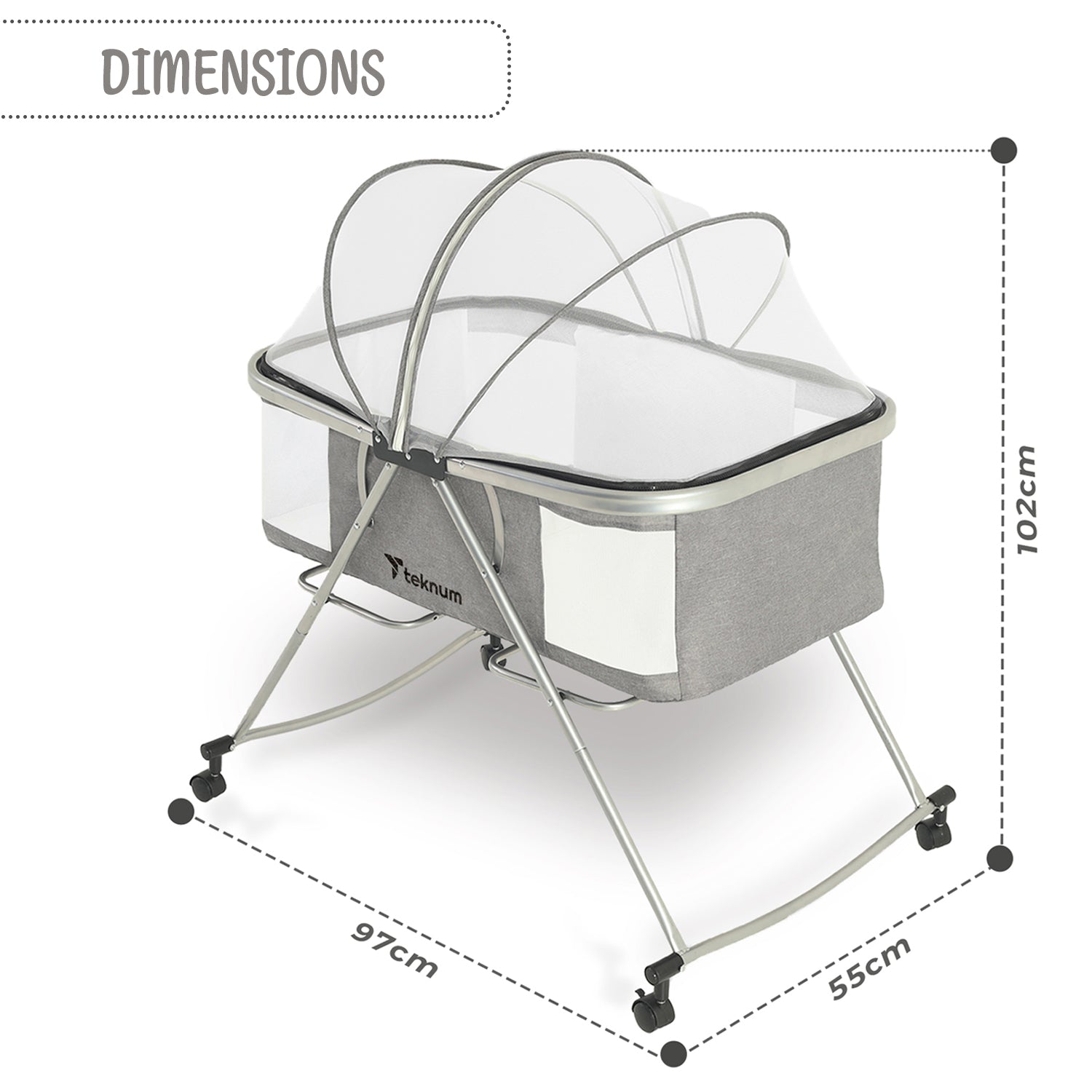 Assembly & Hight Adjustments – No Tools Required, Comes with Comfortable Mattress and Breathable Mosquito net, Baby Rocker Bassinet is made with Premium Soft Linen Fabric and Steel Frame. Cozy Napper Cot comes with Wide Bottom Design for safety assurance. Easy detachable sleeping basket can be removed and used alone as Basket mode. Suitable Age 0 - 12 Months with Load Bearing Capacity up to 15kg. Easy To fold & Carry comes with handle to fold and Go, Easy to Store with unique Collapsible Easy fold design, Teknum 3 - IN - 1 Baby Cot is Great gift for baby shower to get back mother's delicate sleep, giving the baby a comfortable space to sleep naturally.