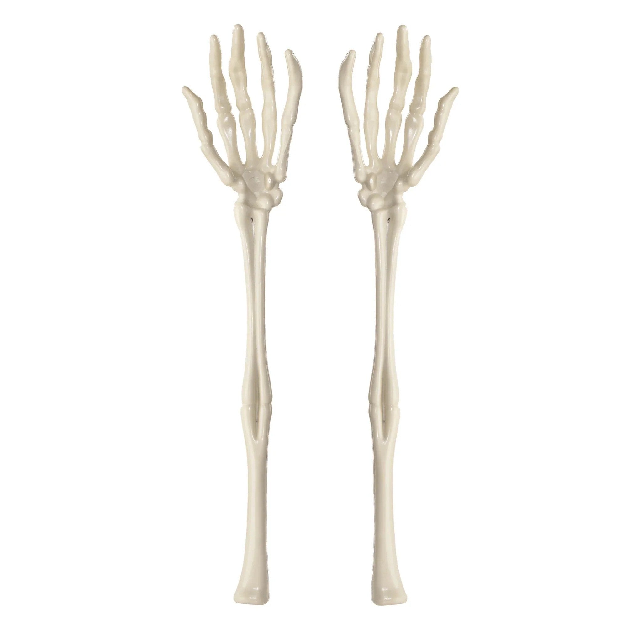 Make salad, pasta, and other delectable dishes with these skeleton serving tools. These Boneyard Service Pieces feature strong plastic parts that resemble spooky Halloween skeleton's forearms and hands. Match it with specially dedicated Halloween tableware - a perfect way to start celebrating Halloween.