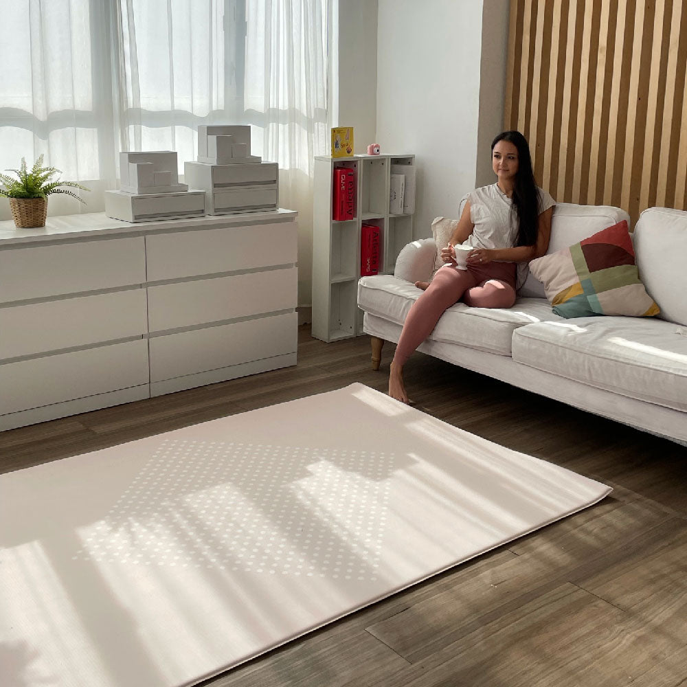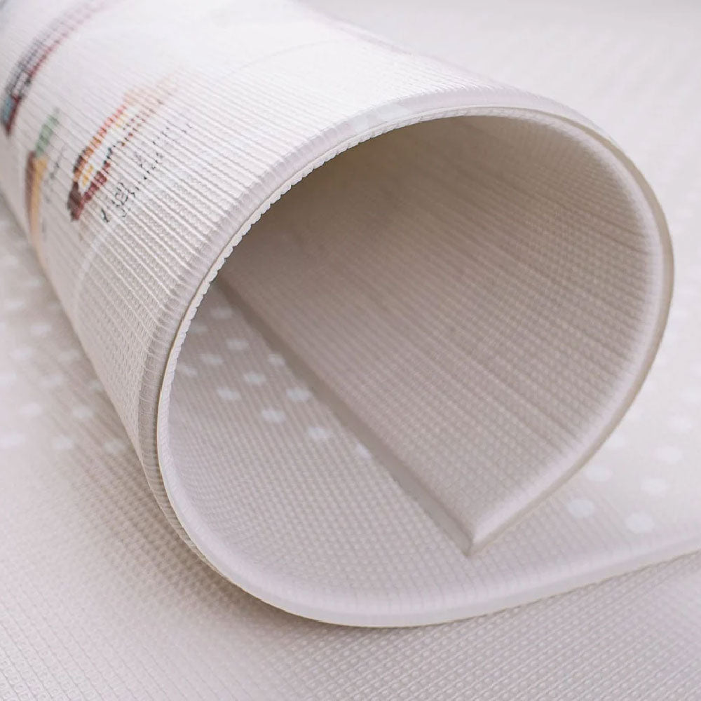 Our mats are reversible designed to offer stylish baby-safe floor covering, flipping from a contemporary cultural map design to a neutral print for two looks in one.