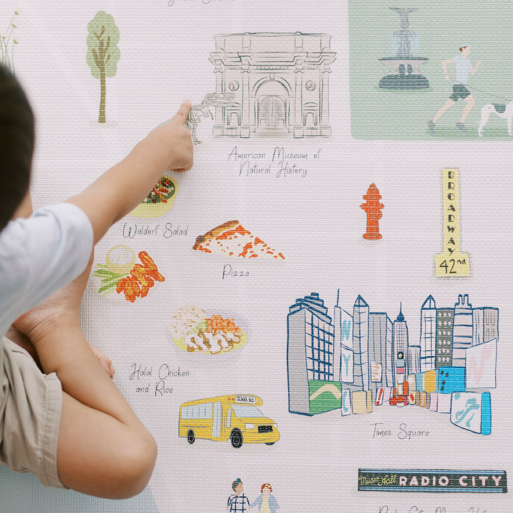 Our New York City Playmat gives you the perfect opportunity to take your little explorer on an adventure to this vibrant city. Hop on for a shopping trip to Times Square, a little stroll down Central Park just before we get down to business at Wall Street! Let them experience the New York magic at the Yankee’s game with a hot-dog in hand or at a Broadway Musical with Chinese take-out for the night.