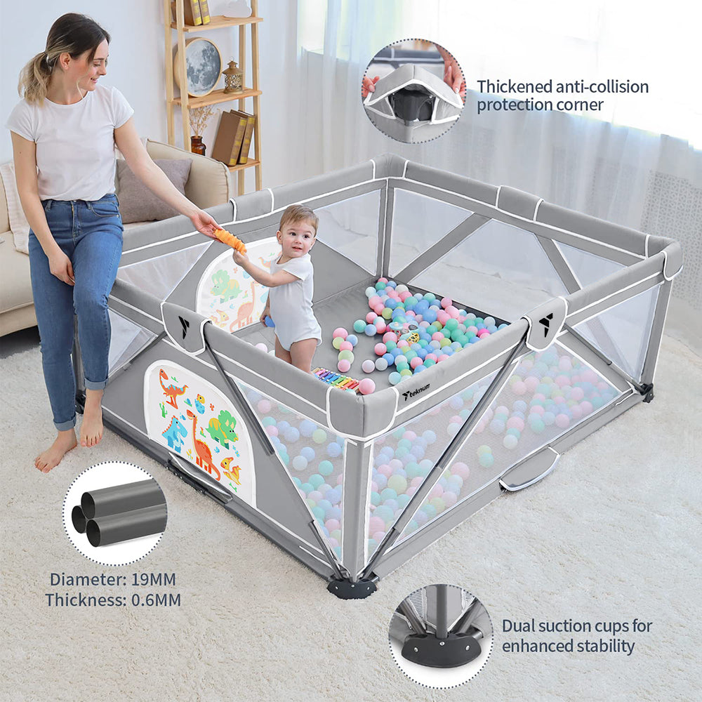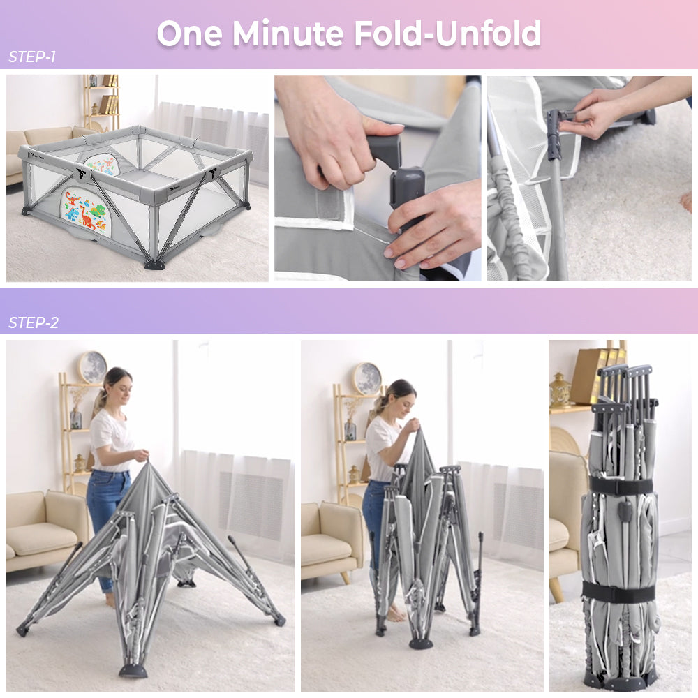 The Teknum One - Minute Fold - Unfold Playpen by SAMBOX comes ready to go right out of the box and should definitely be on your radar. This extremely spacious playpen with a mega area of L×W×H: 150*150*68cm is suitable for toys, books, ball pit and much more! siblings, twins all can have fun!