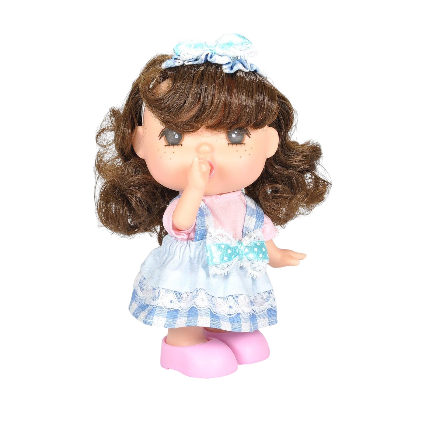 Introduce this cute friend to your little one. this doll is a contemporary japanese version of mademoiselle gege, she is wearing a beautiful contemporary outfit. she sucks her thumb and looks cute. she looks adorable with shoes and hair accessory.