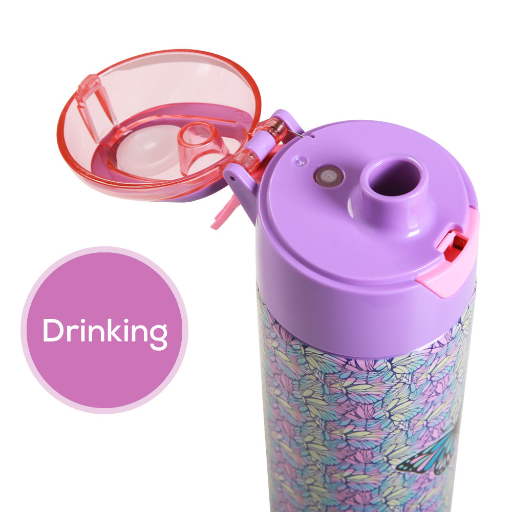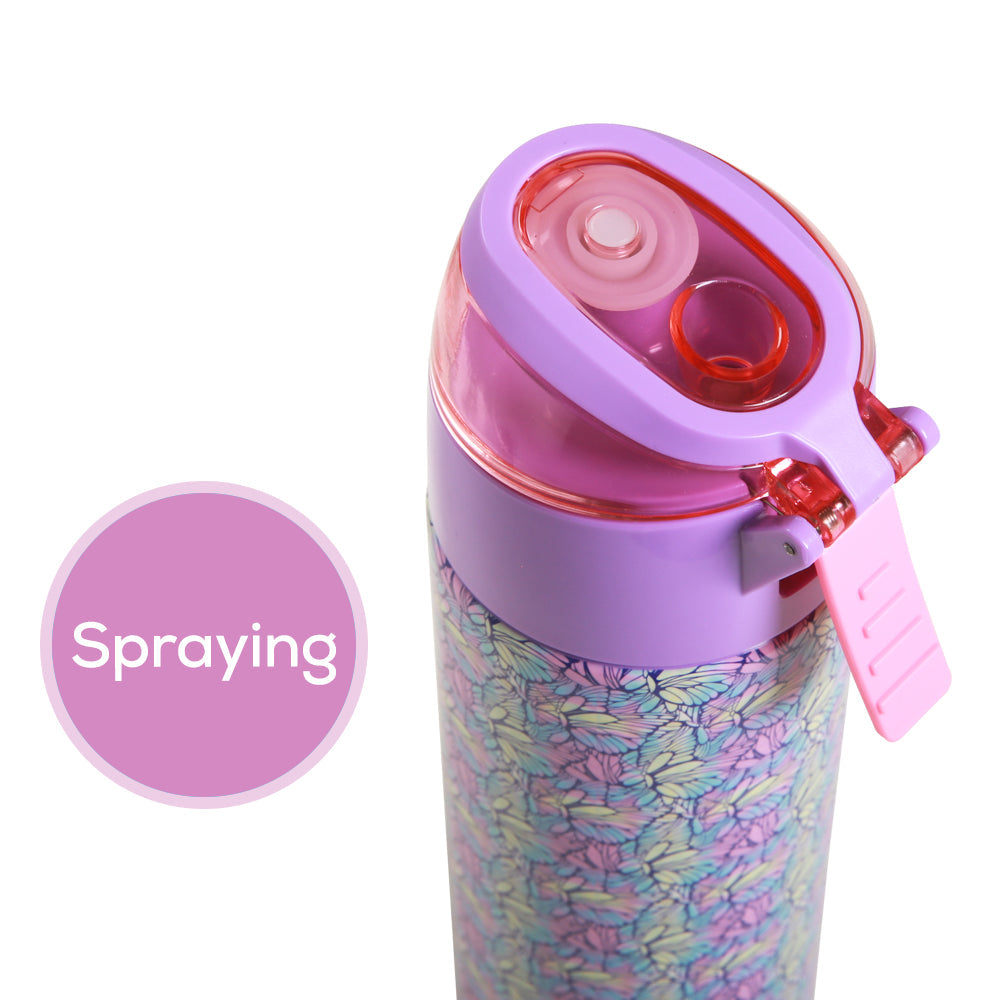 Eazy Kids Insulated Stainless Steel Water Bottle Butterfly W/Spray 640ml - Purple