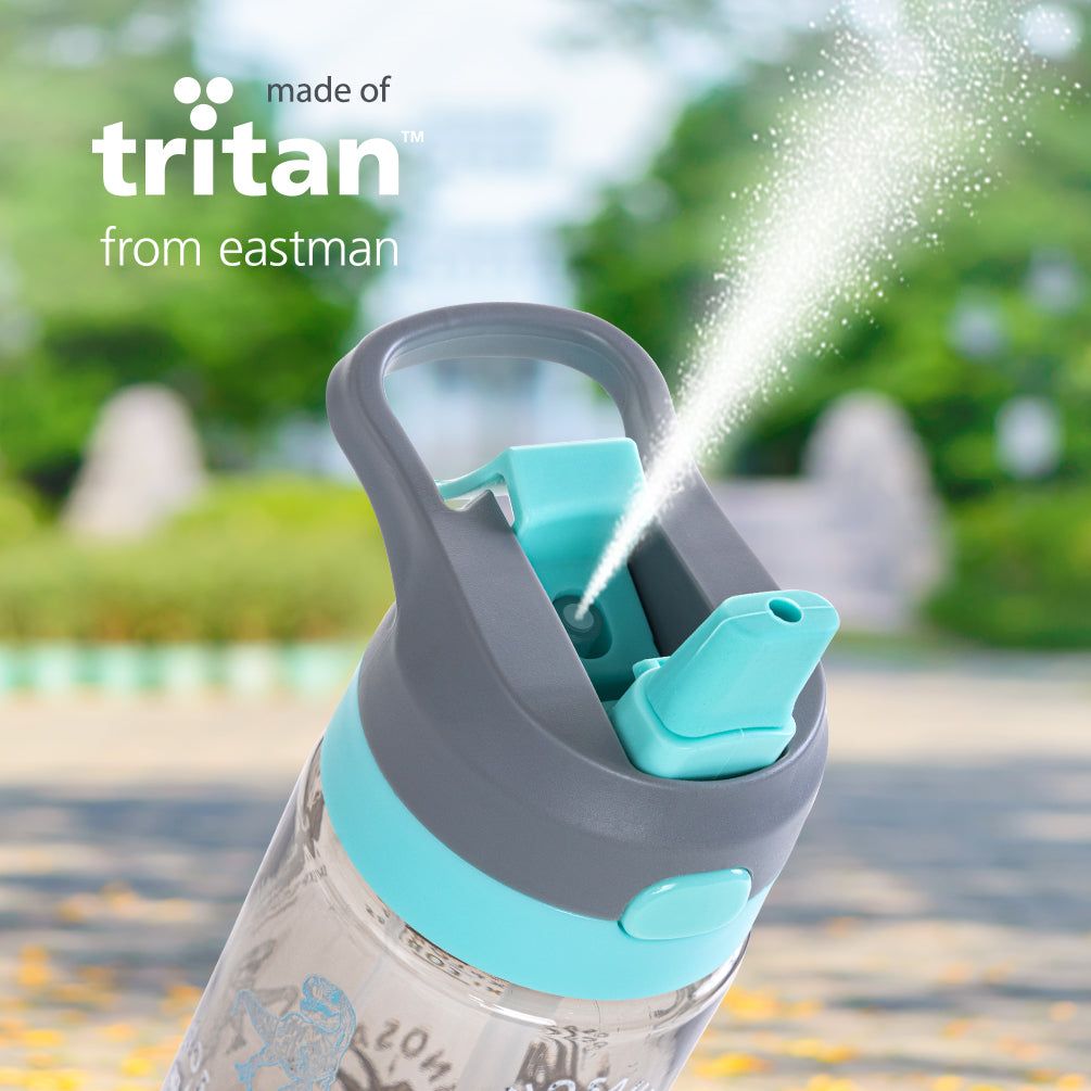 Eazy Kids Tritan Water Bottle Dinosaur W/Spray 750ml - Grey