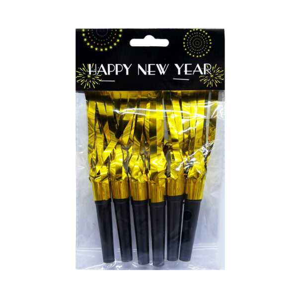 Get some noise makers that are everything you’ll need for your new year’s eve celebration! These blowouts come in a black and gold color with “Happy New Year” print. Make some noise during New Year’s Eve.